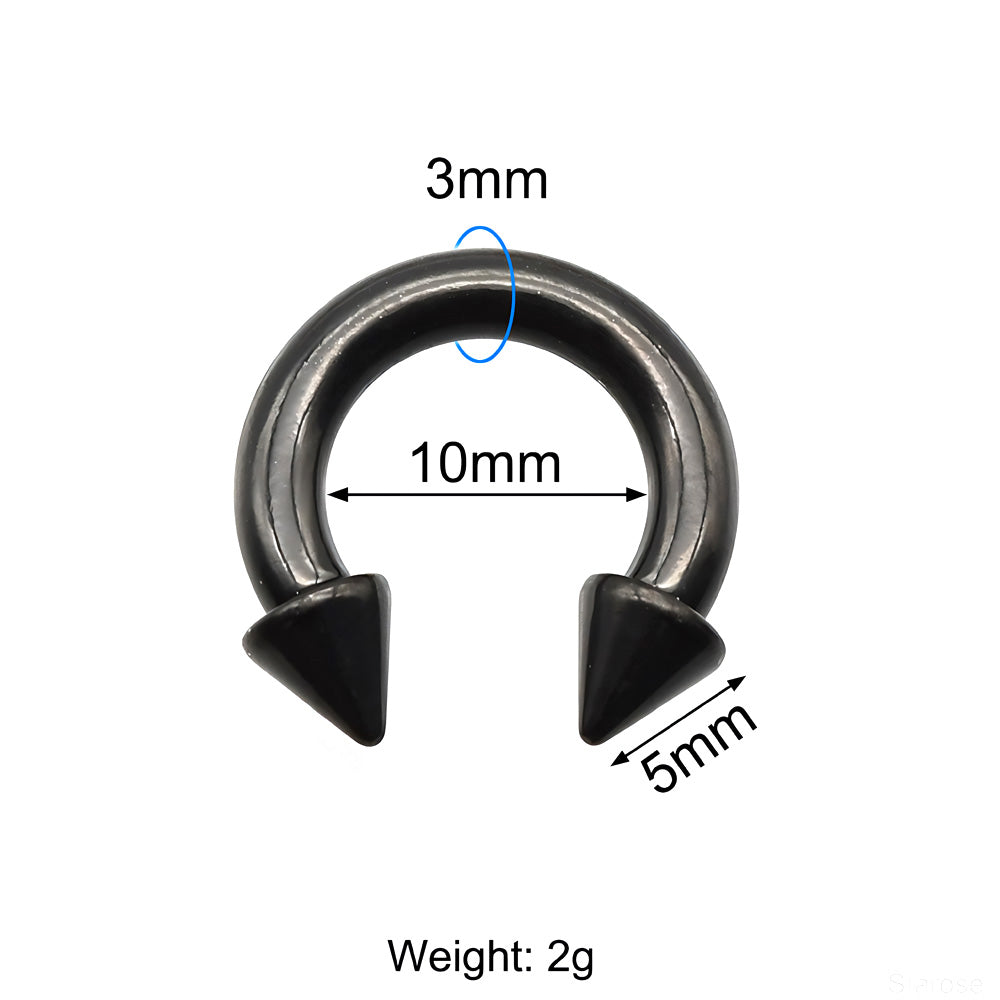 1 Piece Large Gauge Black Stainelss Steel Horseshoe Ring with Spike Circular Barbell Piercing Nose Rings Cone Piercing Septum Rings