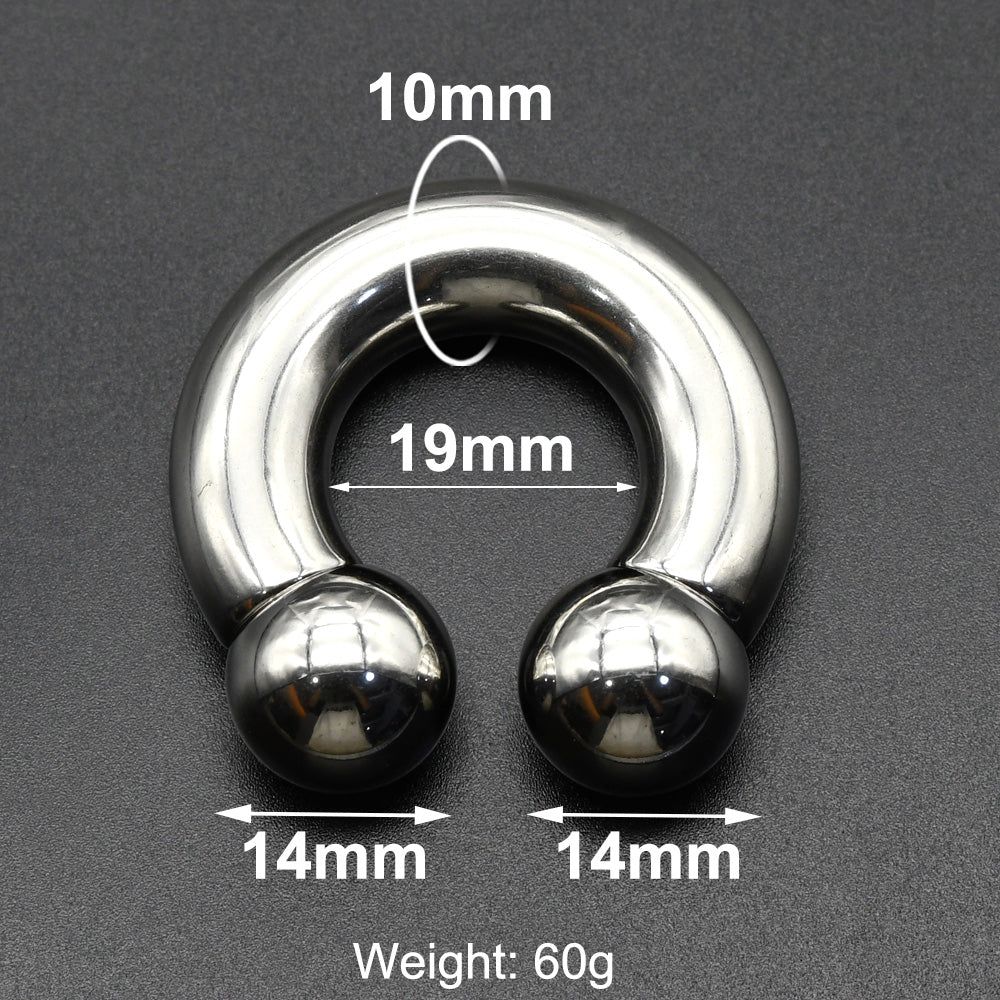 1 Piece 00G-12G Large Gauge Stainless Steel Circular Horseshoe Rings Septum Piercing Hoop Ball End