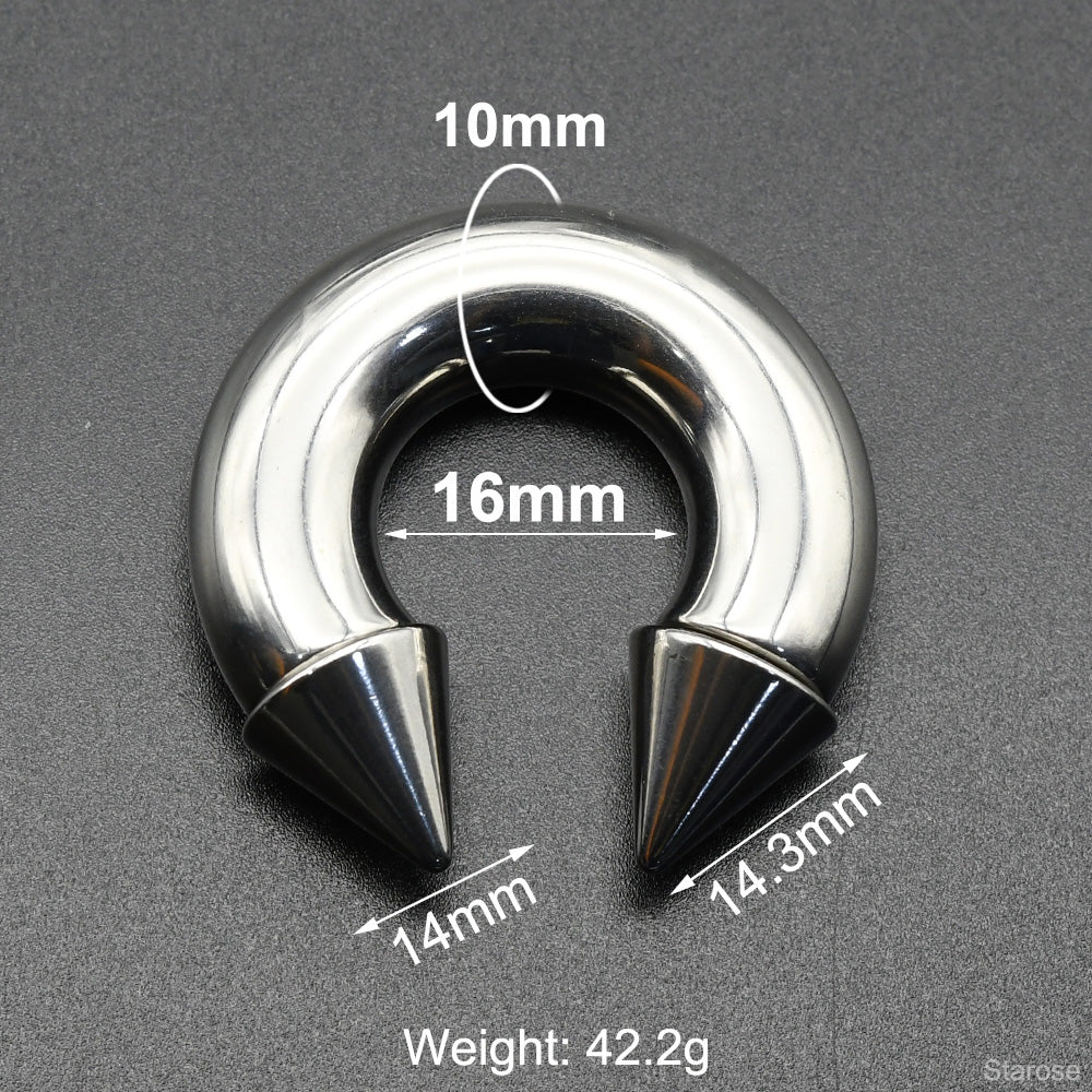 1 Piece Large Gauge Spike Circular Horseshoe Ring Stainless Steel Nose Septum Piercing